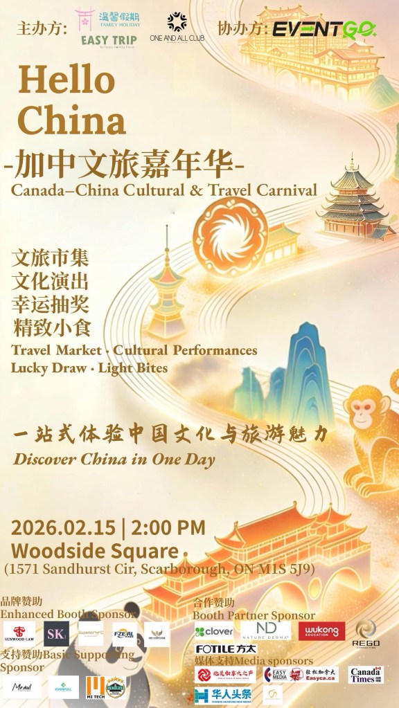 由 OA CLUB 与 温馨假期 联合主办,EventGo 协办的 Hello China|加中文旅嘉年华(Canada–China Cultural & Travel Carnival) 于新春期间在多伦多 Woodside Square 成功举行。