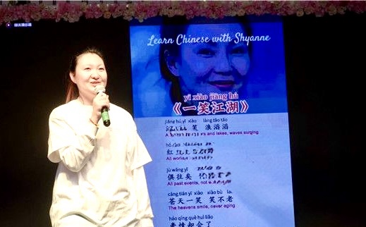 温馨假期主理人演唱中国风歌曲《一笑江湖》,舞台氛围浓厚。