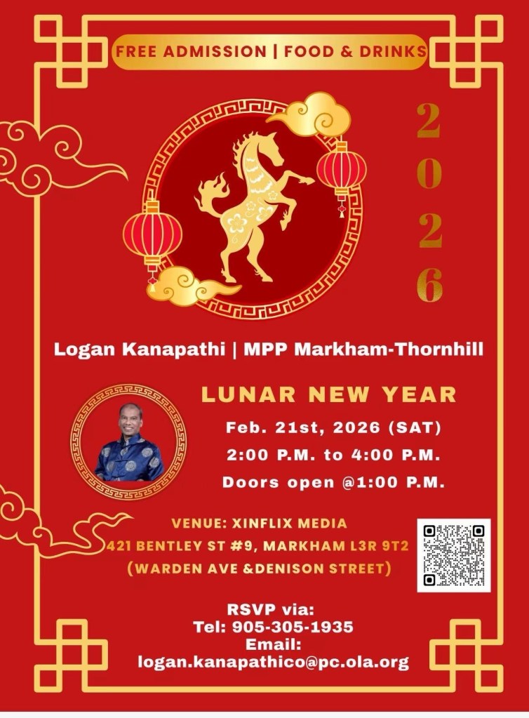 【万锦讯】2026年2月21日(星期六)下午,由万锦康山区省议员Logan Kanapathi(罗庚)主办的“金马迎春,福满乾坤”大型社区春节联欢会在万锦市新动力演播厅隆重举行。活动现场嘉宾云集、气氛喜庆热烈,社区各界人士齐聚一堂,共同庆祝马年新春的到来。