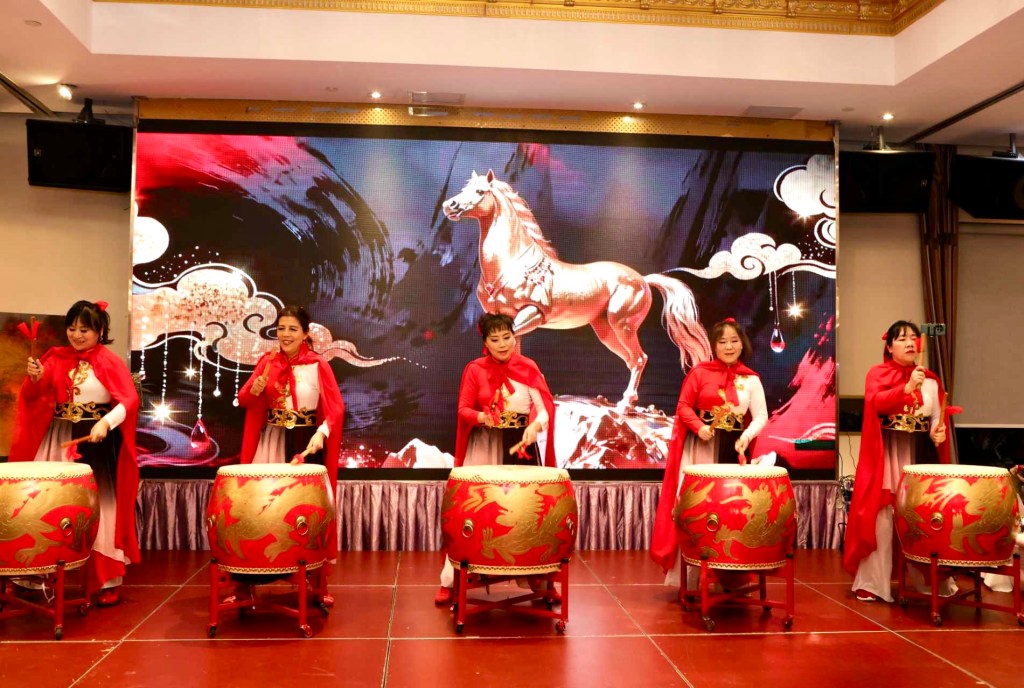 随后,多伦多女子龙鼓队震撼呈现山东大鼓《骏马奔腾》。气势磅礴的鼓声与万马奔腾的画面交相辉映,寓意马年欣欣向荣、勇毅前行,赢得全场热烈掌声。