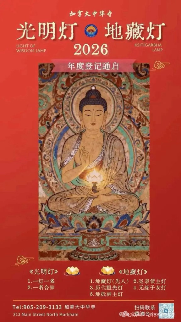 值此殊胜日,让我们共聚加拿大中华寺,以虔诚一念,感应道交,共沐慈光。愿以此共修功德,回向世界和平、国泰民安,也愿众生福慧增长、阖家安康。