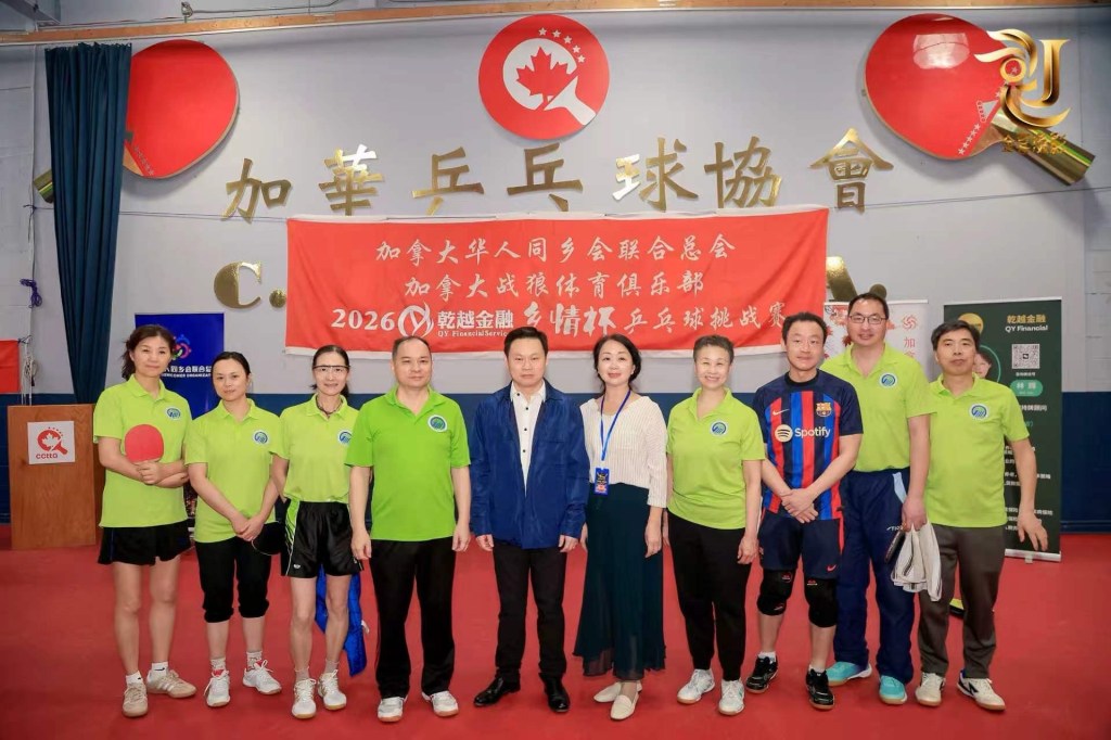 2026年4月4日至5日,2026乾越金融“乡情杯”乒乓球挑战赛在CCTTA加华乒乓球俱乐部顺利举行。本次比赛由加拿大华人同乡会联合总会主办,加拿大战狼体育俱乐部承办,加拿大陕西同乡会协办。赛事吸引了众多乒乓球爱好者踊跃参与,现场气氛热烈。
