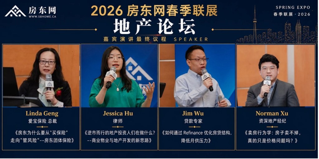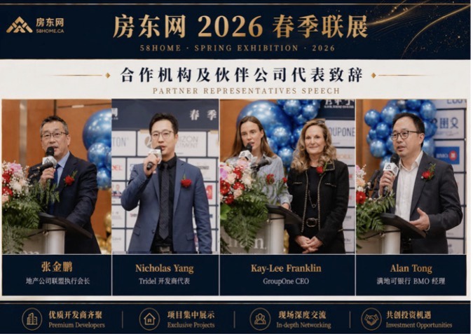 开幕式上来自多方社区伙伴和合作机构的负责人也登台发言祝贺,地产公司联盟执行会长张金鹏, Tridel开发商代表Nicholas Yang, GroupOne CEO Kay-Lee Franklin ,满地可银行BMO 经理AlanTong以及来自粤港澳大湾区的Miko Yan 致辞预祝房东网联展成功,并表示今后紧密合作。 多维度的声音在同一场域中碰撞,让论坛内容更加立体,也更具现实参考价值。